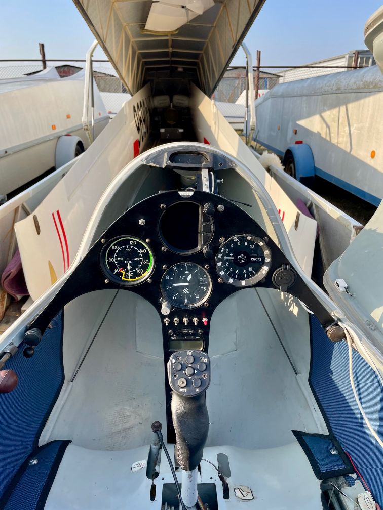 přístroje: rychloměr Winter, výškoměr, variometr PZL, rádio KRT2 + bridge na propojení s S100, navigace s loggerem LX NAV S100 s ovládáním na kniplu, záložní logger Erixx, Flarm/OGN tracker (SoftRF), canopy flasher přední v kabině i spodní pod trupem, USB port na palubce, Bohli kompas