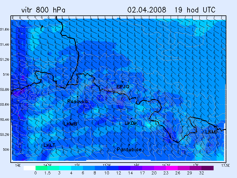 WRF NMM -vítr 800 hPa