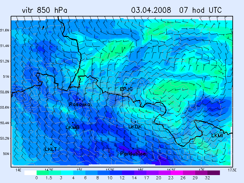 WRF NMM -vítr 850 hPa
