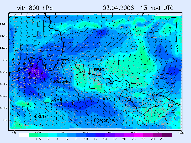 WRF NMM -vítr 800 hPa