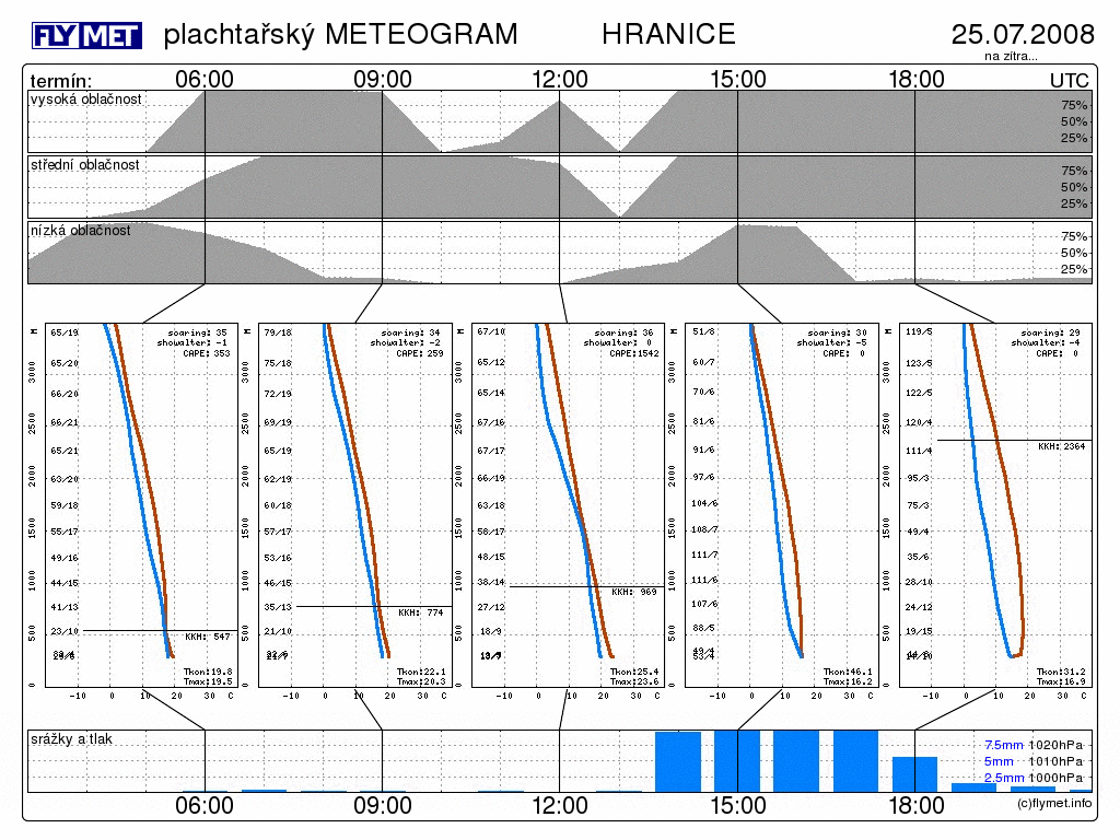 někde se nejspíše stala chybka, flymet si odporuje. V mapě na zítra(26.7) na moravě není po dešti ani stopy ale v hranících plachtařský meteogram říká že bude pršet a to dosti výrazně. Nebo máme čekat nějaké lokální průtrže mračen?
