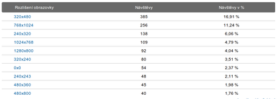Poznámka: rozlišení obrazovek mobilních zařízení