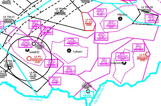 - TMA II Brno bylo spojeno s TMA II Uherské Hradiště – spodní hranice v 5000 AMSL a bylo přejmenováno na TMA III Brno ( jde o dočasné řešení problému se službou řízení v Kunovicích … bude dále upraveno podle vývoje v LETu )